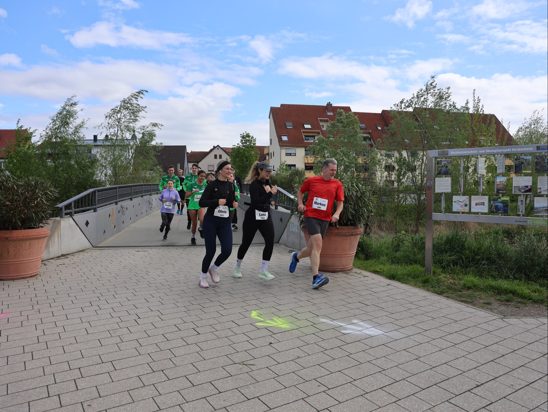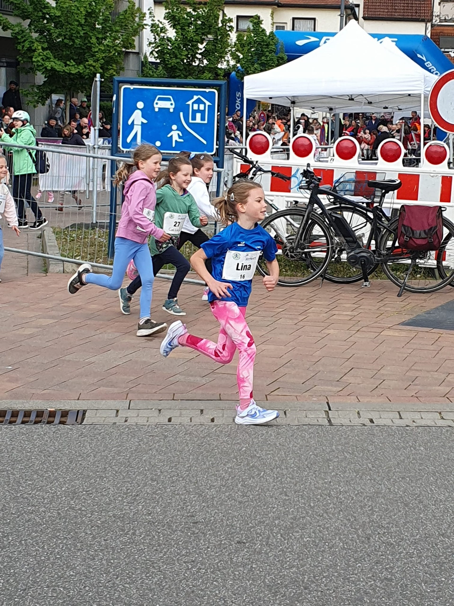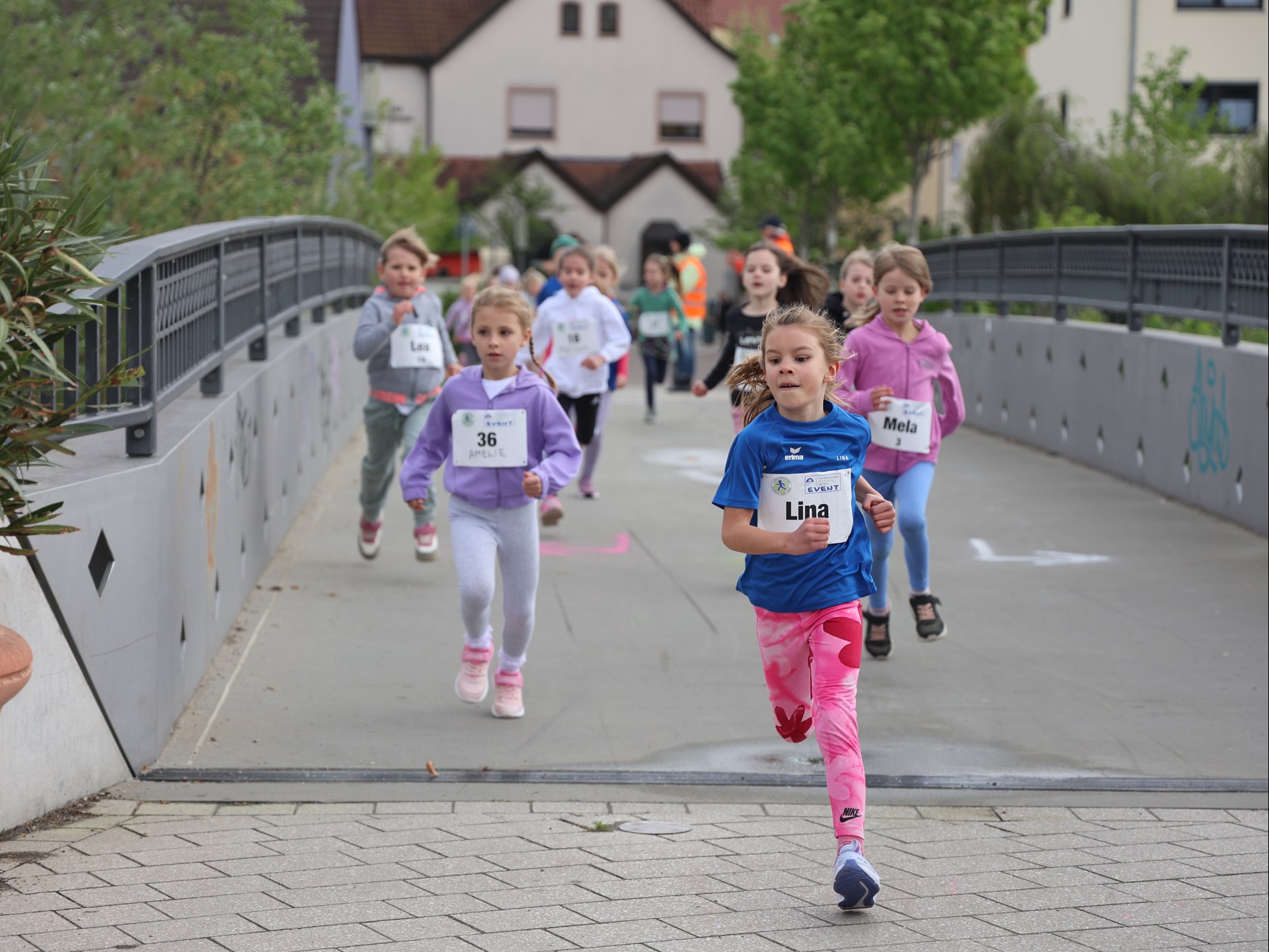 Die Bambiniläufer (U8 - Jahrgänge 2019 und jünger) legten pünktlich um 12 Uhr los. Unter den Anfeuerungsrufen der vielen Zuschauer, spurteten zuerst die Mädchen die 350 Meter lange Strecke über die zwei Kraichbachbrücken, bevor dann die Jungs ihre Runde drehten.