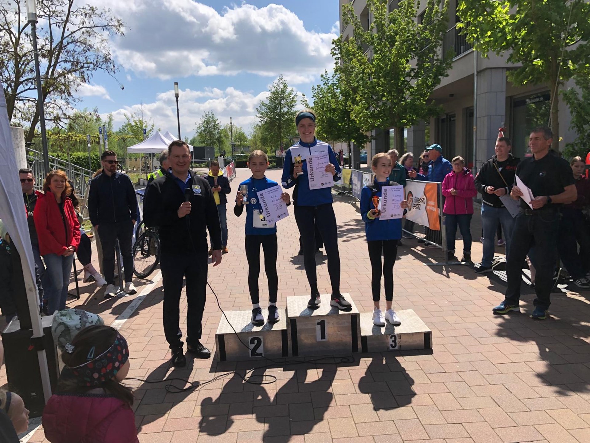 Mit Larissa Schmitt und Greta Golf waren gleich zwei DJK Mädchen unter den drei schnellsten Läuferinnen im Ziel. Larissa bekam dafür bei der späteren Siegerehrung einen Pokal in der Farbe Silber, Greta in Bronze überreicht.