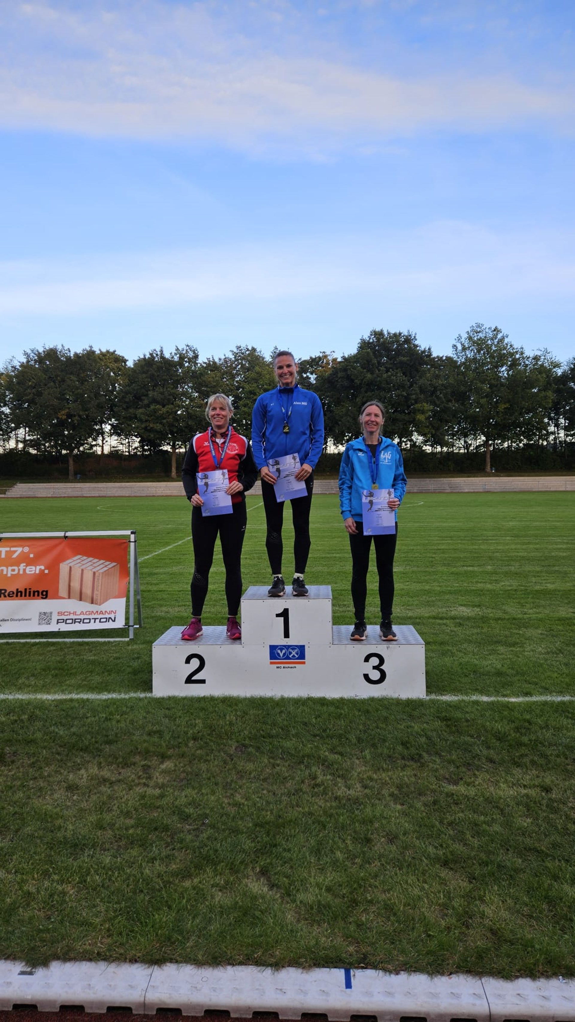 Ein perfekter Saisonabschluss gelang DJK Masters Athletin Alexandra Möske (W45) am Tag der Deutschen Einheit in Aichach. Das Mehrkampftalent hatte sich in diesem Jahr über Baden-Württtembergische bis hin zu Deutschen Meisterschaften qualifiziert und mehrere Medaillen in diversen Einzeldisziplinen ergattert. Im August wurde sie zur Vizemeisterin im Dreisprung bei den Deutschen Masters gekürt. Als letzter großer Wettkampf der Freiluftsaison standen nun noch die Süddeutschen Meisterschaften im Mehrkampf auf ihrem Terminplan. Im schwäbischen Aichach wurden die Medaillen in den Altersklassen M/W30 bis M/W65 im Fünfkampf (100 Meter Lauf, Weitsprung, Hochsprung, Kugelstoßen, 800 Meter Lauf) vergeben.